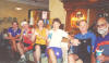The theme of the day is: "I COULD DO THIS ALL DAY" Today's scheduled to be 73 miles. Before the day is done we'll need to finish a really steep climb out of Virginia City, MT. They say that it's a 7% grade for 4 miles. I left breakfast by 7AM and was moving at a pretty good rate, by 9AM I was at the 30 mile mark. When I'm back in the office I'm usually at my desk at 9AM and today I already had done 30 miles... what a kick!! The picnic stop was in the town of Sheridan at the 38 mile mark. I arrived by 9:45. Wow that's what you call an early breakfast. Following the picnic stop, I fell in with a group of guys in a pace line. They were going at a pretty good rate, so I decided to join the line. In a pace line, generally the guy leading it will stay in front for about a mile, then fall back and the second guy than becomes the leader for another mile. Generally the speed is kept fairly fast but constant. In this case, myself included, it seemed that with each new leader, the speed increased slightly (perhaps a mile and hour). Well since there were about six of us, it only took a couple of rotations until we were going in the mid 20's and we were starting to climb up to Nevada City to boot! Well I eventually dropped out, too pooped to keep up the pace. Within a couple of miles, I pulled into Nevada City. It was noon by now and getting pretty hot. I spent an hour or so walking thru the old ghost town that has actually been pasted together from several other towns. The highlight of the town is the two level outhouse, really! Well one more mile up the road was Virginia City. Where Nevada City was a ghost town, Virginia City ( http://www.westyellowstonenet.com/attractions/virginia_city.htm ) was a tourist trap, errr tourist attractions with stores, saloons and stage coach rides. I join a bunch of other riders in at a soda fountain and had a root beer float. As we left Virginia City the climb began. At 7%, this was the steepest incline so far in the ride. It wasn't easy, but I figured that if I had to, I could stop at the 1/2 mile mark. By the 1/2 mark, I was ready to stop, but then I saw someone else at that point and I figured that I must be a better rider than her, so I figured that I would go to the one mile mark. At the one mile mark, I wasn't too pooped and so kept climbing slowly up the hill. I realized that I could make it the remaining three miles with out stopping. At that time, I started to talk back to the mountain. I started to mutter, then a bit louder.... "is that all you've got?" "is that all you got" "I could this all day" I could do this all day". As I spoke the I was picking up some speed and slowly started to pass other rides. They all thought I was crazy as I was shouting to them "I COULD DO THIS ALL DAY". By the time I was at the top, I was really moving pretty fast. Before the descent