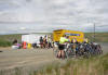 The theme of the day: "Wow, never gone this fast before!" They warned us that today was going to be a long day, 94 miles. We took a pretty bike path to a several a long incline. By 9AM we were had travel 20 miles since the start of the day and still climbing. Gee... Some days 9AM would be my first meeting, but today I was traveling from coast to coast. The big climb was followed by a huge downhill. Whatever speed we hit yesterday, we surpassed today. At the bottom of the downhill we were hit by a crosswind that forced us to lean the bike just to keep straight. Of course every downhill is followed by a uphill. The landscape sort of looked like some areas of the California desert with high vertical walls. The climb took a while but topped out again on a plateau with rolling hills. The road was straight and luckily the wind was to our back. With the combination of the winds and the hills, I broke 45
