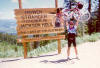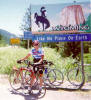As we left the town of Ashton we could see the Tetons looming in the distance. By the end of the day we will cross over the mountains to Jackson WY. The air was cool and calm. A welcome change to the hot windy conditions that greeted us in Ashton the evening before. The roads were twisty curvy with some uphills. At mile ten we had a chance at a "practice hill". By the end of the day, we will have had all the hills that we could stand. At the 30 mile mark, we stopped at a gas station for a break and for something to drink. Up until now, there were farms, farms and more farms, but no place to stop... Unless you count the Beef Jerky place. The Picnic Stop was nine miles further along in the town of Driggs. As usual the picnic stop was welcome. I think that most people were reluctant to start attack the upcoming hill, as so lunch ran a bit longer than usual. By the time we got back on the road, the winds started to pick up. Not unexpected but surely not very welcome. The winds came mostly from the south west, just in the direction we were heading! An eight mile bike path connected Driggs to Victor. In Victor they had an old time soda fountain were they could mix up the flavor soda you wanted. It reminded me of my Father's store that he had while I was growing up. I had a cherry soda and we were off again. Just five more miles and we left Idaho and entered Wyoming. We took pictures at the state line and brace ourselves for the upcoming climb. I don't think that I've ever climbed a 10 percent grade before (10 percent grade means for every 100 feet you go forward, you rise 10 feet). By this time, I was riding with at least 8 other folks as well. All of them better at climbing that me, but the seven miles to the top was going to be tough on everyone. The headwinds that we were battling had started to shift to tail winds and the temperatures was not too hot. The routine was get into your smallest gear and start peddling... Don't look up... After a couple of stops and more than an hour later were all were to the top, taking photos and looking at the views. It was great!! It seems that everyone had a different game to getting there, some had songs playing in their heads, some concentrating on their breathing, but for me I saw everyone in front of me cranking away and I just keep doing what I had to do to reach the top. The descent into "the hole" was as steep as the ascent. We needed to stop