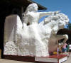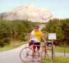 Each day ought to have a theme. If so, today's theme is "To Be A Tourist". The schedule ride is only forty miles, but if you go to see Crazy Horse, then it's fifty four. The two tourist stops along the way and short enough mileage allowed me to have time to enjoy them. Plus we're heading East and entering South Dakota. We've been in Wyoming since Jackson Hole ( eight days ) longer than any other state! The road typically was hilly and luckily the wind was still with us. We hit some larger climbs and descents at mile 20. After a couple of miles, the road was similar to something that I would envision would be in Appalachia. Narrow winding with dense trees on either side. We're now in the black hills and the hills were name for it's forests not it's rocks. The picnic stop was at the Jewel caves ( http://www.nps.gov/jeca/ ). The Jewel Cave was the first tourist stop as well. The cave was very interesting. It was the first cave that I've seen that had an elevator as an entrance!! After the cave, the town of Custer ( http://www.custer-sd.com/ ) was only thirteen more miles further. From the town of Custer, both Rick an I headed up to the Crazy Horse Monument ( http://www.crazyhorse.org/ ). This site is huge!!! When completed it will be an achievement. It's been a work in progress for over fifty years. Who knows, it may take another fifty years to complete!! On the way to the monument, Rick and I had a green sports car zoom by us beeping it's horn and stopping shortly in front of us. The driver jumped out of the car and started to walk in our direction. We couldn't figure out what his problem was. It turned out that he was the publisher of the "News Letter Journal" ( http://www.trib.com ) in Newcastle, where we started our day. He found out about us after we had left town and spent the day tracking down bicyclists in order to get a story. He took a shot of Rick and Me in front of Crazy Horse asked us some questions and was on his way. I don't know if we ever made it into the paper. When I returned to Custer I came across Jim, Laurie and Erika sharing bread, cheese and wine outside an